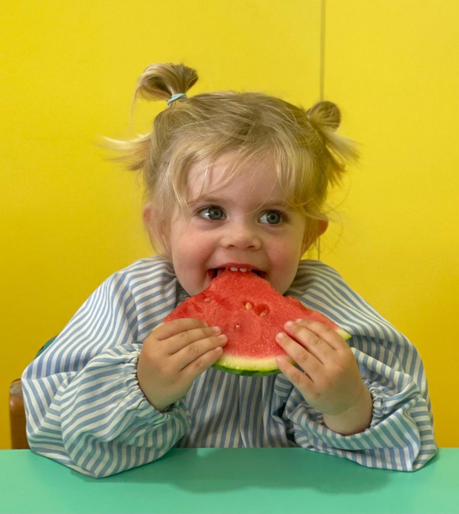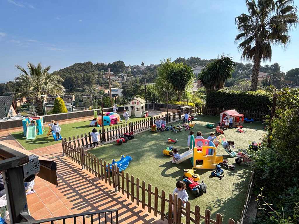 Espai exterior: Tenim un jardí de més de 600m2 que forma part dels aprenentatges, amb espais diferenciats per diversificar i enriquir les possibilitats de joc lliure: hort, arbres fruiters, gespa, flors… A on els infants gaudeixen en plena natural