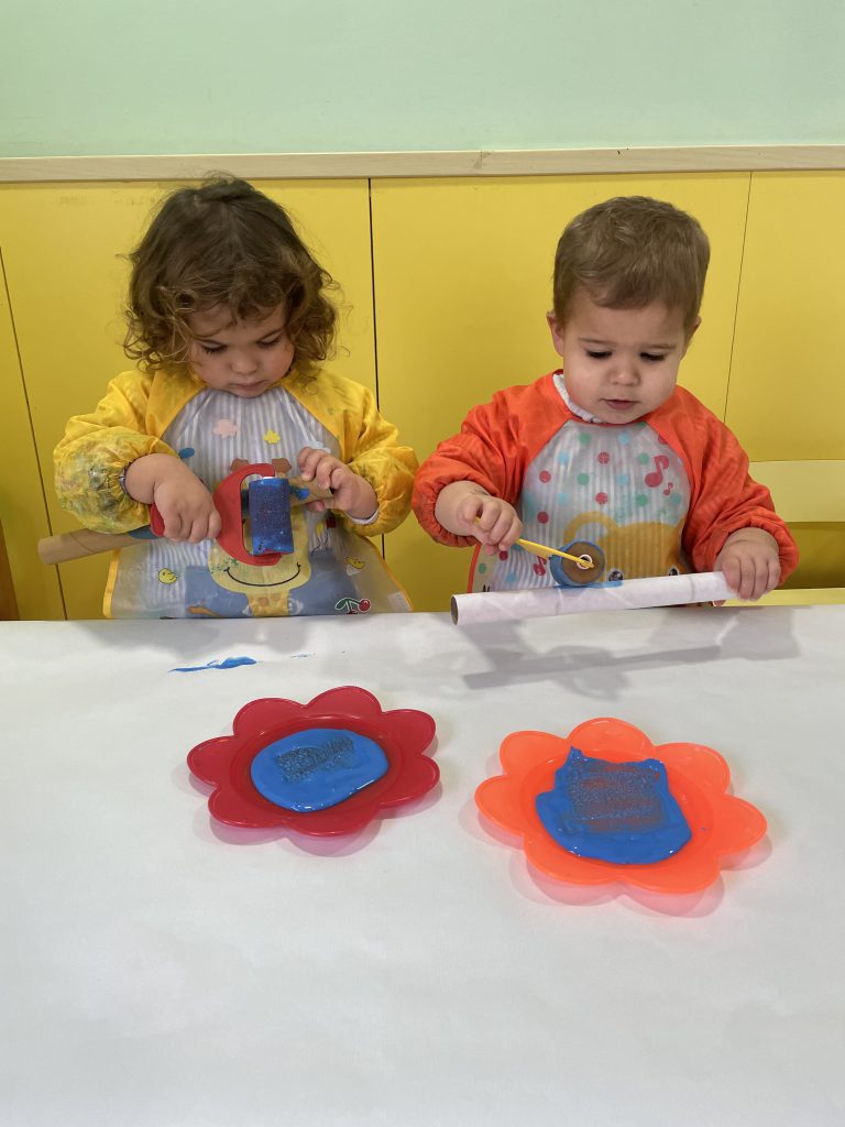 Plàstica: Quan miren les imatges, contes i objectes que hi ha a la classe. Quan juguen amb les pintures de dits, la plastilina, les ceres, i altres materials, perceben quina és la imatge i la textura de les coses.