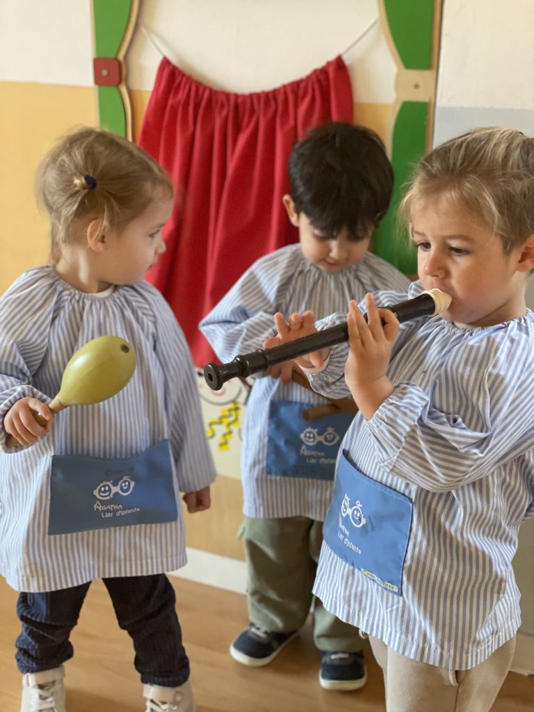 Música: L’objectiu és que a través de sons,cançons,titelles,jocs de falda,instruments,danses,bits, audicions musicals… L’infant va descobrint la música. També fem sessions de musicoteràpia que ens ajuden a afavorir el benestar físic i emocional